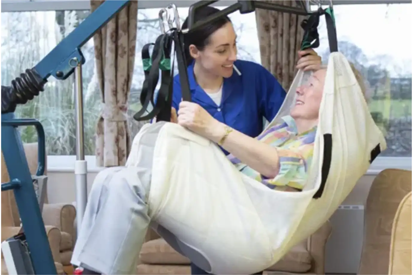 Safe lifting and moving techniques for care environments.